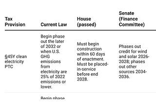 Comparison of Changes to Energy Tax Credits in House and Senate Bills