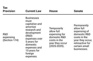 Comparisons of Tax Provisions in House and Senate Bills – Business